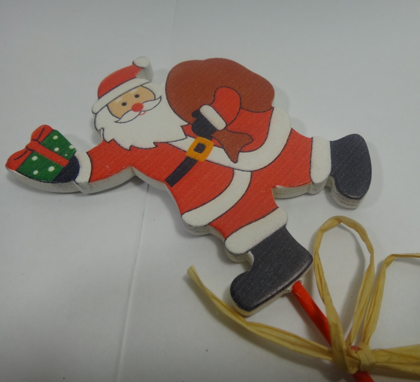 Деревянный декор на палочке Дед Мороз .
